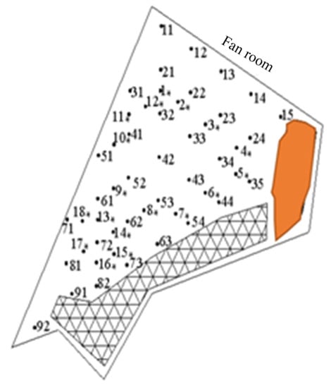 In the process of pre-construction drilling and fire source excavation, a number of temperature measuring points in the internal fire zone were retained, and the positions of these measuring points were counted, as shown in Figure 10. There were 21 random measuring points in total. The internal temperature was measured, as shown in Figure 12.
