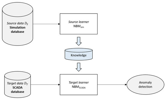 The SCADA database used for building the normal behavior monitoring model represents our target domain data with a feature space and a distribution , whereas a large simulation database serves as the source domain data with a corresponding feature space and distribution .
