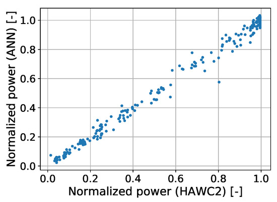 Normalized power estimated by ANNon test setwith respect to normalized power simulations.