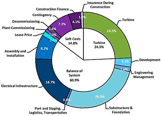 Typical capital costs involved in offshore wind turbine projects (Adapted with permission from ref. [1]. Copyright 2020 Webinar Hosted by National Renewable Energy Laboratory).