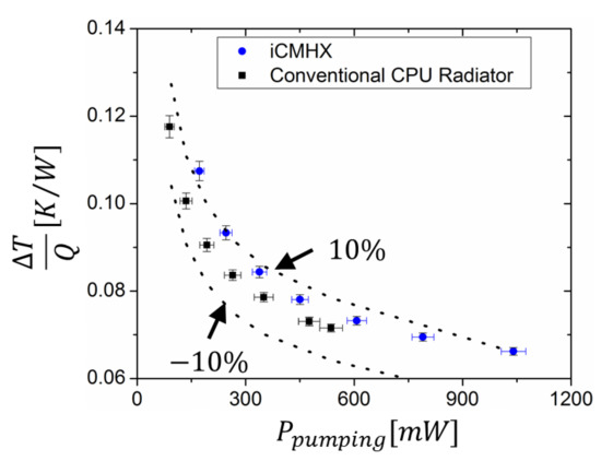 Design details, as measured, of the current iCMHX unit and conventional CPU radiator.