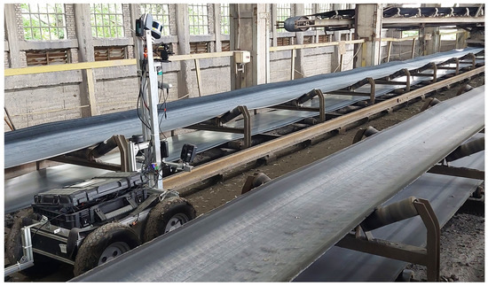 Collecting the images by mobile robot may be a significant factor influencing image analysis. It should be mentioned that the idea of replacing of human inspection by inspection robots is not new. Inspection robots are also used in other applications, for example, for the inspection of airports [41]. Raviola [42] discussed using collaborative robots to enhance Electro-Hydraulic Servo-Actuators used in aircrafts. A legged robot was proposed for inspection in [43], a wheeled robot equipped with a manipulator was discussed in [44], and finally, a specially designed robot with a self-leveling system and hybrid wheel-legged locomotion was discussed in [45]. Other solutions based on robots suspended on a rope above the conveyor [46] or UAV [31] are also interesting solutions.