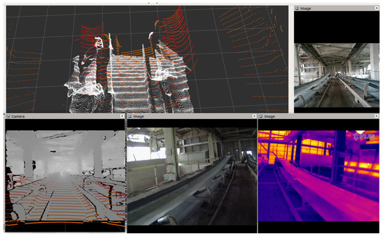 The authors in [40] proposed a system which combines a thermal-infrared camera with a range sensor to obtain three-dimensional (3D) models of environments with both appearance and temperature information. The proposed system creates a map by integrating RGB and IR images through timestamp-based interpolation and information obtained at the system calibration stage. The authors emphasize that the system is able to accurately reproduce the surroundings, even in complete darkness.