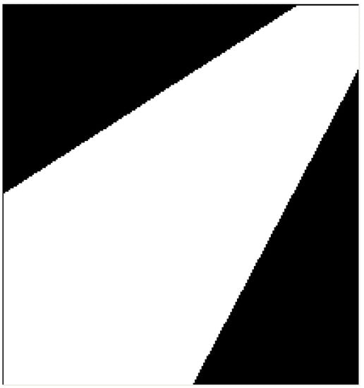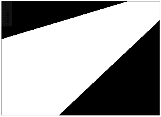 After that, a mask is created, with the initial ROI based on the previously cropped area. Borders of the mask are defined either by edge lines detected in previous process (as shown in Figure 8) or by the use of a predetermined shape. The predetermined shape takes the central diagonal (corner to corner) line as a base and creates constant borders based on the regular shape of belt that becomes smaller the further it is from the robot. An example of the created mask can be seen in Figure 10.