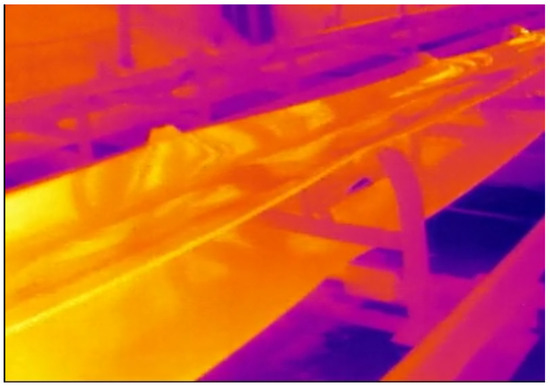 As can be seen in Figure 19, the main reason for lowered detection efficiency occurred mostly in the first part of the analyzed video. As stated in the second paragraph of this section, the case of high belt temperature over a long period of time was present. The exemplary frame can be seen in Figure 20.