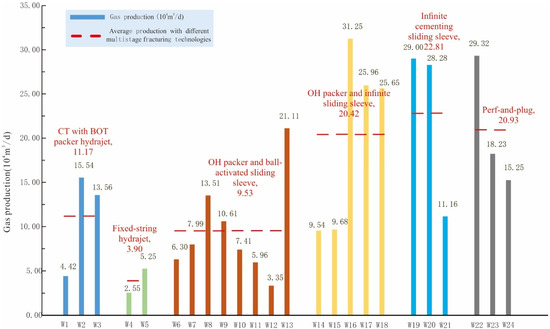 Production of horizontal wells with different multistage fracturing technologies.