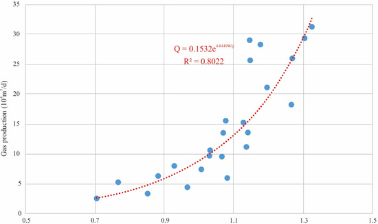 The annual average daily gas production (annual cumulative gas production divided by production days) was used to measure the production of each fractured horizontal well, as shown in Figure 8.