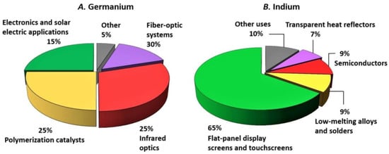 - Shanks, W.C.P., III; Kimball, B.E.; Tolcin, A.C.; Guberman, D.E. Germanium and Indium. In Critical Mineral Resources of the United States—Economic and Environmental Geology and Prospects for Future Supply; Schulz, K.J., DeYoung, J.H., Jr., Seal, R.R., II, Bradley, D.C., Eds.; U.S. Geological Survey Professional Paper; U.S. Geological Survey: Reston, VA, USA, 2017; pp. 1–27. [Google Scholar] [CrossRef] [Green Version]