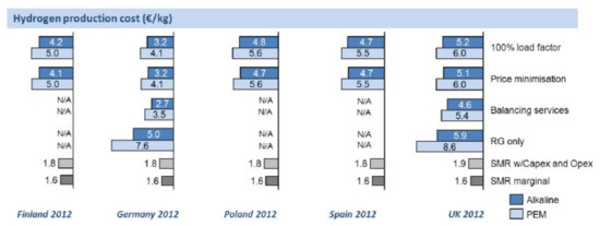 - E4tech and Element Energy Prepared for Fuel Cells and Hydrogen Joint Undertaking, Development of Water Electrolysis in the European Union Final Report. 2014. Available online: https://www.fch.europa.eu/sites/default/files/study%20electrolyser_0-Logos_0_0.pdf (accessed on 5 January 2022).