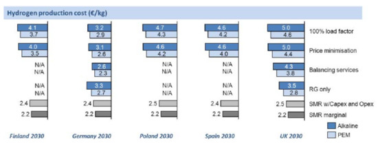 - Jørgensen, C.; Ropenus, S. Production price of hydrogen from grid connected electrolysis in a power market with high wind penetration. Int. J. Hydrogen Energy 2008, 33, 5335–5344. [Google Scholar] [CrossRef]