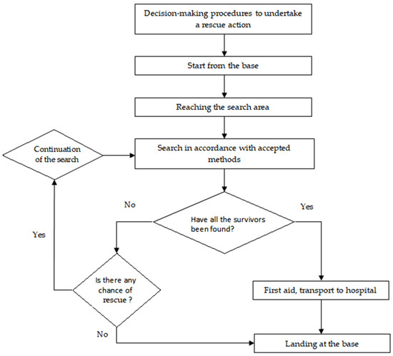 The analyzed transport tasks, which are the executive elements of the rescue operation, are carried out in accordance with the procedures adopted by the SAR system. On this basis, in each task, activities essential for the implementation of the transport task and the rescue operation itself should be distinguished: