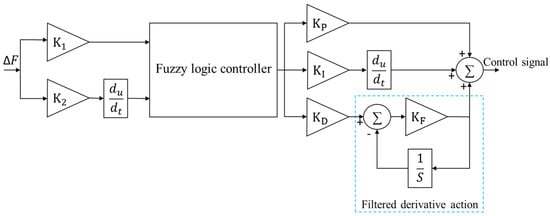 - Shouran, M.; Anayi, F.; Packianather, M. Fuzzy PID with Filtered Derivative Mode Based Load Frequency Control of Two-Area Power System. In Proceedings of the 2021 56th International Universities Power Engineering Conference (UPEC), Virtuell, UK, 31 August–3 September 2021; pp. 1–6. [Google Scholar] [CrossRef]