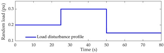 Moreover, for further robustness examination of the proposed fuzzy design at various load perturbations, a random disturbance is applied with a different magnitude in area one, as demonstrated in Figure 12. The dynamic responses of the testbed system when it is exposed to different load disturbances are shown in Figure 13, Figure 14 and Figure 15.