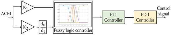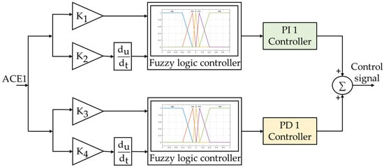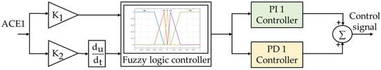 Block diagram of Fuzzy PI plus Fuzzy PD controller configuration equipped in area one.