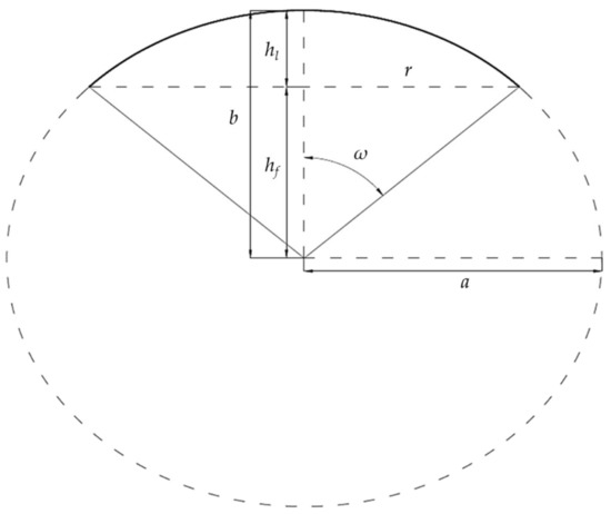 As shown in Figure 2, the conception of the elliptical arch depends on the radius or aperture of the concentrator (r), its focal height (hf) and the height of the arch (hl). The angle ω is the aperture angle or rim angle of the concentrator, with hf and r defining its size. The ellipse’s major axis “a” and minor axis “b” can be both calculated with those variables through Equation (2). The minor axis “b” is the combination of hf and hl and, once it is found, the major axis “a” can be acquired.