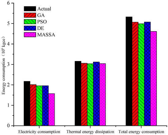 The recorded results of statistical analysis show that all algorithms cannot find the global optimal. The reason is that the parameters, T, and population_size, are relatively small. The search range in the case study is relatively small and all algorithms will converge within 100 generations. If the parameter value is too large, it is equivalent to an exhaustive method, and there is not much actual use-value. In summary, the above analysis results show that the MASSA has excellent performance on unimodal function and multimodal functions. Besides, the convergence ability of MASSA is also great, which shows that the two improved strategies are effective. At the beginning of the algorithm iteration, the multi-group co-evolution strategy can ensure the population diversity, and this can prevent the MASSA from falling into the local optimal in advance. Meanwhile, through adaptive inertia weight, the step size of flying squirrels can be adjusted according to the difference of the fitness function value, which can balance the exploitation capability and the exploration ability effectively. These results show that is it feasible to solve the optimization model through MASSA.