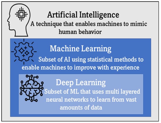 Artificial intelligence (AI) is described as “The science and engineering of making intelligent machines” by John McCarthy. AI makes it possible for machines to learn from experience and change behavior based on inputs in the same way as humans. The ability to rationalize and take actions on their own, combining computer science and datasets, is the ideal characteristic of AI. AI algorithms are designed to make decisions based on real-time data. Weak AI/narrow AI is task-specific which is weak, whereas Strong AI is a combination of general AI and super AI. General AI can understand the environment and reason and makes decisions accordingly. Super AI is the highest level of AI, where systems make decisions in unknown environments with uncertainty. The domains of AI shown in Figure 1 can be used to solve real-world problems the way humans do.