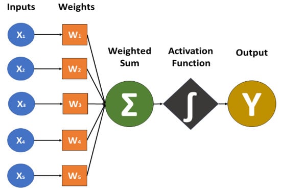 Multi-layer perceptron (MLP) or a fully connected neural network is a neural network with at least three layers: an input layer, one or more hidden layers, and an output layer that performs non-linear mapping of inputs and outputs. Each layer has multiple computational units called neuron/perceptron [1], shown in Figure 3. The neuron takes the input, multiplies it with weight, and adds bias, followed by a non-linear activation function. The output layer performs the classification or prediction. Thus, the output is given by where Y is the output, f denotes a non-linear function, w is the weight vector, b is the bias, and x is the input vector.