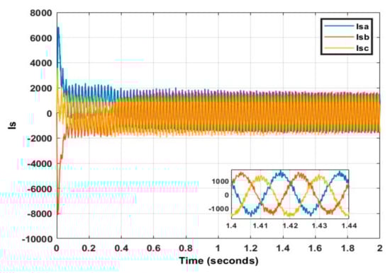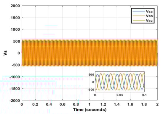 Figure 9 depict the three-phase stator voltage and current, respectively, with