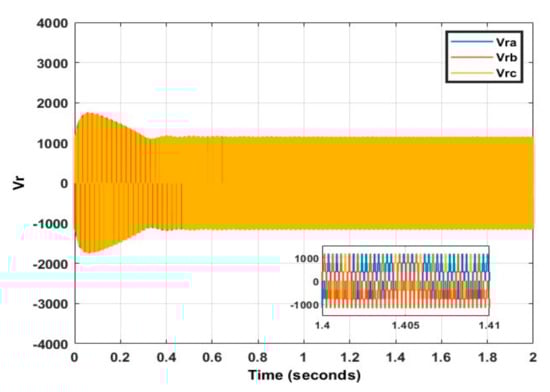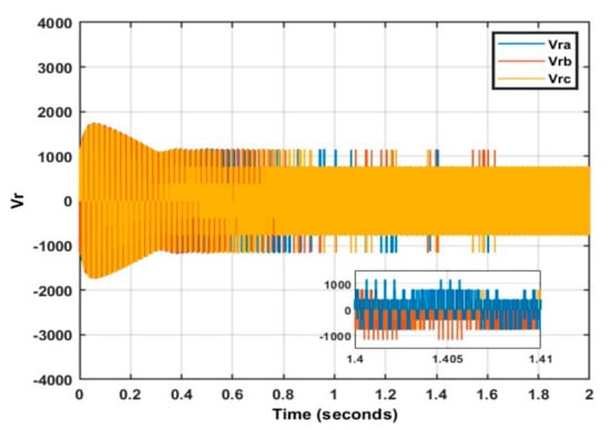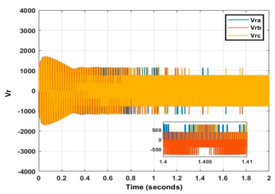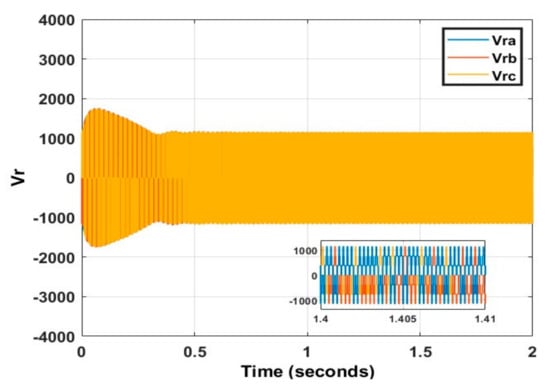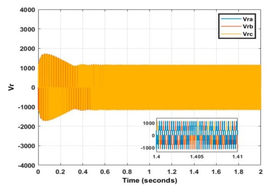 Figure 11 displaying the three-phase rotor voltage and current, respectively.
