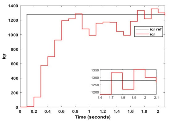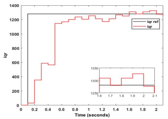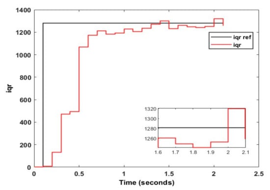 As with the rotor direct current, this error percentage is extremely low, and once again well within acceptable ranges. The overshoot and steady-state ripple of the rotor quadrature current, as observed in