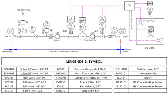 Figure 3 shows the P&ID of hydrogen gas supply monitoring system. The method is as follows. First, open the hydrogen container and adjust it so that hydrogen gas can flow into the gas cylinder cabinet through the pipe, and set the pressure so that it can be maintained at 400 kPa by operating the pressure regulator. Thereafter, adjust the hydrogen gas injection so that the flow rate can be maintained at 12 m