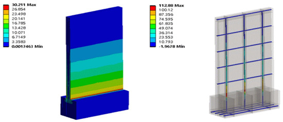 The structural analysis of the protective wall was conducted, and as a result, the maximum stress of the concrete model was measured to be 30.211 MPa, and the maximum stress of the reinforcing bar model was measured to be 112.88 MPa as in