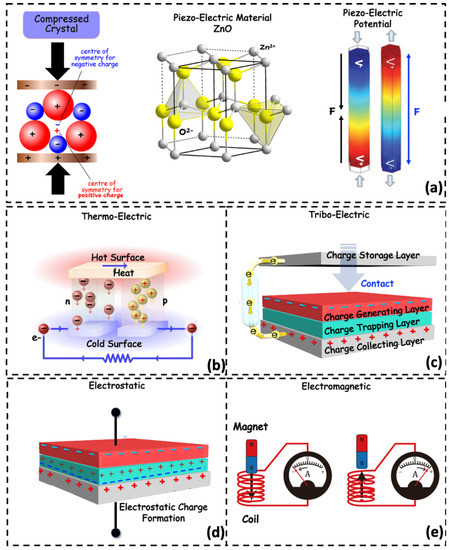 - Khaligh, A.; Zeng, P.; Zheng, C. Kinetic Energy Harvesting Using Piezoelectric and Electromagnetic Technologies–State of the Art. IEEE Trans. Ind. Electron. 2010, 57, 850–860. [Google Scholar] [CrossRef]
