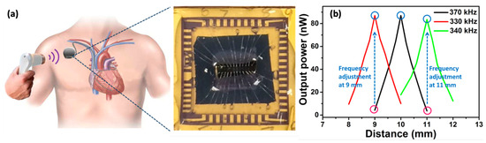 | Ultrasonic | 1.2–290 | High efficiency for small IMDs; increased penetration depth; compact design; minimal tissue heating | Low power harvesting; poor data transmission; low efficiency in large IMDs; requires propagation medium | Implantable medical devices |