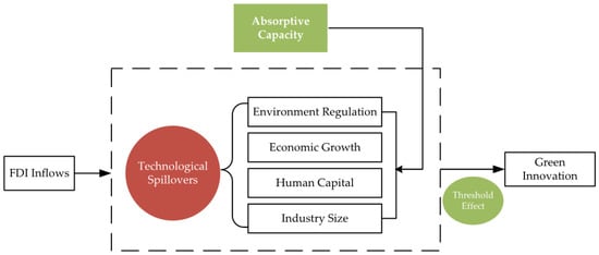 Since the initial work conducted by Macdougall, who proposed the theory of the FDI technology spillover effect, a vast body of literature on the influence mechanisms of FDI in promoting regional green innovation has been created [