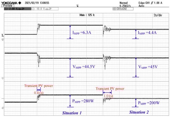 Experimental results of the proposed HRA method (top to bottom: PV current, PV voltage, PV power).