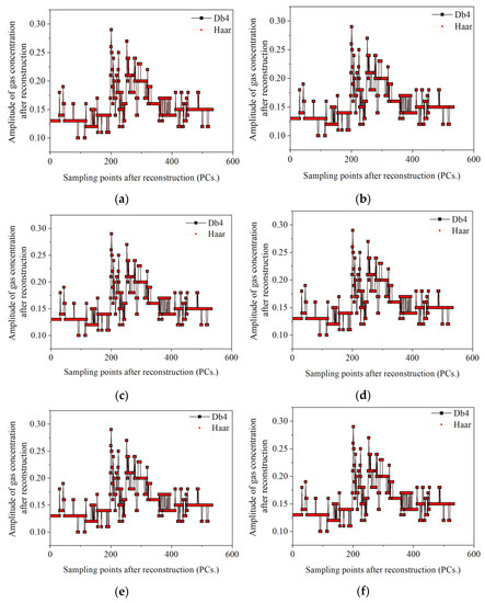 Figure 9 shows the multilevel wavelet reconstruction results when the wavelet bases are the Db4 and the Haar. We can obtain the following findings: