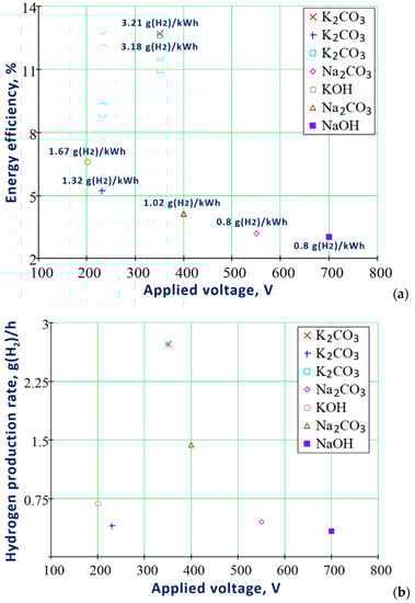 In recent years, a new type of electrolysis, initially known as the contact glow-discharge electrolysis (CGDE) and, more recently, as the plasma-driven solution electrolysis (PDSE), has attracted attention as an alternative method of hydrogen production [10,11,12]. Literature studies have shown that the Faradaic efficiency of hydrogen production in PDSE is dozens of times higher than that in Faradaic electrolysis [13,14,15].