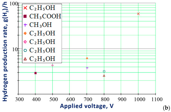 - Xin, Y.; Sun, B.; Zhu, X.; Yan, Z.; Liu, Y.; Liu, H. Characteristics of hydrogen produced by pulsed discharge in ethanol solution. Appl. Energy 2016, 168, 122–129. [Google Scholar] [CrossRef]
