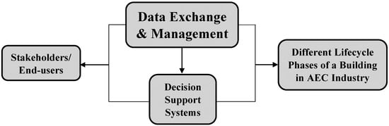 Overall, such tools create a vast amount of data, either from procedures of planning, design, construction, operation, maintenance and destruction/recycling of buildings, or from sensors installed in the building, which are exchanged in various ways between the stakeholders and aim to improve the energy efficiency of the building [17,38,39]. One challenge related to the use of these tools is that a vast amount of different types of data, which cannot be easily traded and handled, are used for knowledge extraction by stakeholders of different backgrounds [30]. Incompatible software and proprietary information between the stakeholders are also some reasons for this issue [30]. The different types of data relate to geolocation data, 2D/3D models, plans, semantic data, system data, material data, sensor data, etc. Stakeholders vary through the different phases of a building’s life cycle and can include architects, engineers, construction teams, facility managers, occupants, policymakers and governance.