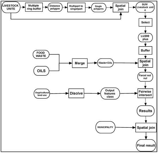 To find and select optimal locations, we used quantitative data related to the geographical distribution and spatial density of input substrates for biogas production. The input data sets for the model are: