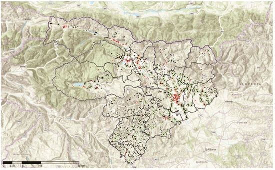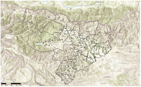 - An Atlas of the Environment. Available online: http://gis.arso.gov.si/atlasokolja/profile.aspx?id=Atlas_Okolja_AXL@Arso (accessed on 15 May 2020).