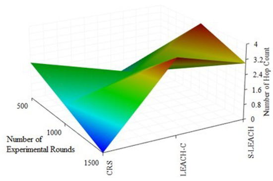Figure 20 shows that the CRS protocol’s mean hop count decreased by 1%, whereas LEACH-C and S-LEACH increased by 2% throughout the experimental rounds. This recorded observation is due to the adaptation of CRS protocol to the DD-TDMA’s slot adjustments based on the generation of data packets and thus forms an optimized clustering environment.