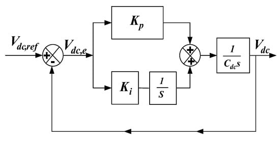 where is denoted as the active power component of the grid. As illustrated in Figure 4, the obtained transfer function of the PI regulator ‘’ is presented as