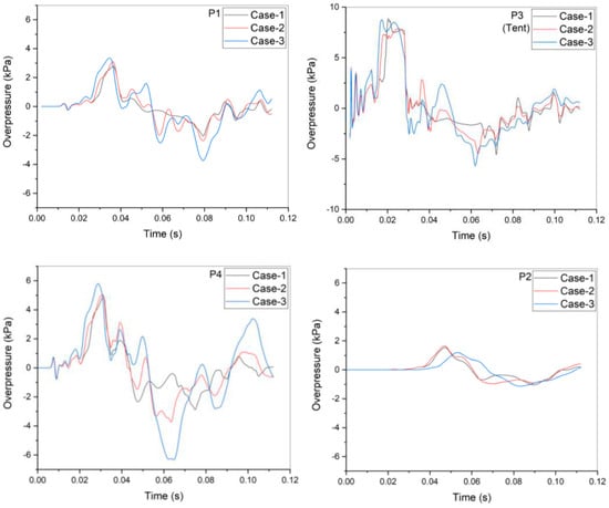 Measured peak overpressure according to test cases [].