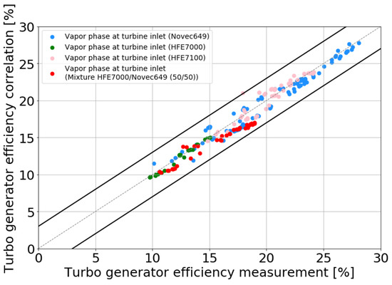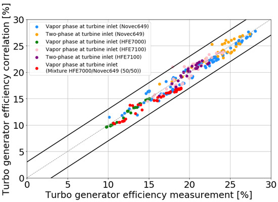 In Section 4, we will investigate the complete sets of data to confirm and quantify the role of the two-phase condition on electrical efficiency for different test conditions and fluids.