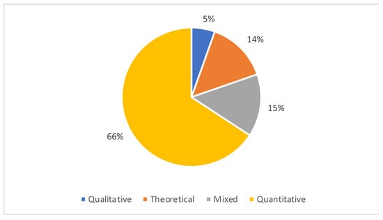 From the analysis of Figure 4 becomes visible that most of the analyzed papers have an empirical approach. Two thirds of the studies have a quantitative approach, resorting to several estimation, modeling, and simulation techniques.