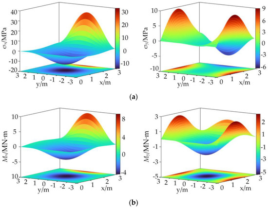 Then, the expressions of each stress component and internal force can be obtained from Equations (6) and (7):
