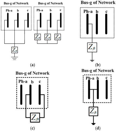 Figure 2 describes various types of faults in the power system. Sags due to a fault at any usual bus ɸ of the system and the voltages in terms of unsymmetrical sequence components at bus Ψ are expressed in Equations (2)–(4) [3,21,22]: