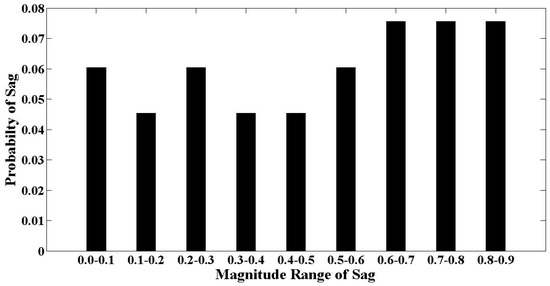 Similarly, for the range of 0.0 to 0.1 p.u., the range was 0.060606. This analysis was performed for a time duration of 80 ms. The variation of the joint probability of sag due to SLGF for the different ranges of magnitude is shown in Figure 8.