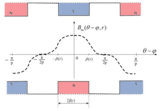 Using the Fourier series, the magnetic flux-density distribution in the gap induced by Permanent Magnets can be approximated by [9,11,39,40]: