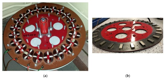 Laboratory model of AFPMG with NdFeB magnets: (a) Stator disk; (b) Rotor disk.