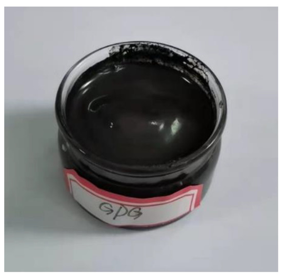 Graphene nanosheets, double-soluble surfactants and nonionic surfactants were added to ethanol or propanol volatile environment-friendly dispersant with boiling point below 100 °C in certain proportions, stirred and mixed well to make graphene dispersion; a graphene dispersion substance was put into a non-metallic closed container and heated by microwave; volatile dispersant was completely evaporated and vaporized at 90–100 °C, and surfactants around graphene nanosheets form highly dispersed concentrated laminate foam; graphene laminate foam was released to atmospheric pressure by ultrasonic vibration, cooled to room temperature, and finally coalesced into graphene concentrated poly-gel. Figure 2 shows the prepared GPG.