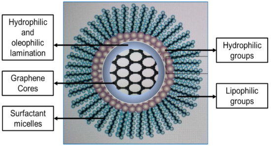 Figure 9 shows that GPG consists of graphene nanosheet cores, hydrophilic and oleophilic lamination and surfactant micelles. GPG has unique properties such as high specific surface area, high dispersion, high levels of foam and high thermal conductivity. It can be used as foam stabilizer for the foam–cement slurry system.