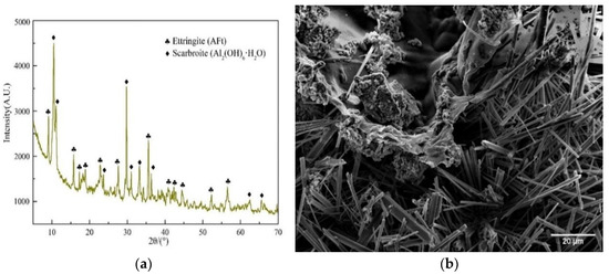 - Satava, V.; Veprek, O. Thermal Decomposition of Ettringite Under Hydrothermal Conditions. J. Am. Ceram. Soc. 1975, 58, 357–359. [Google Scholar] [CrossRef]
